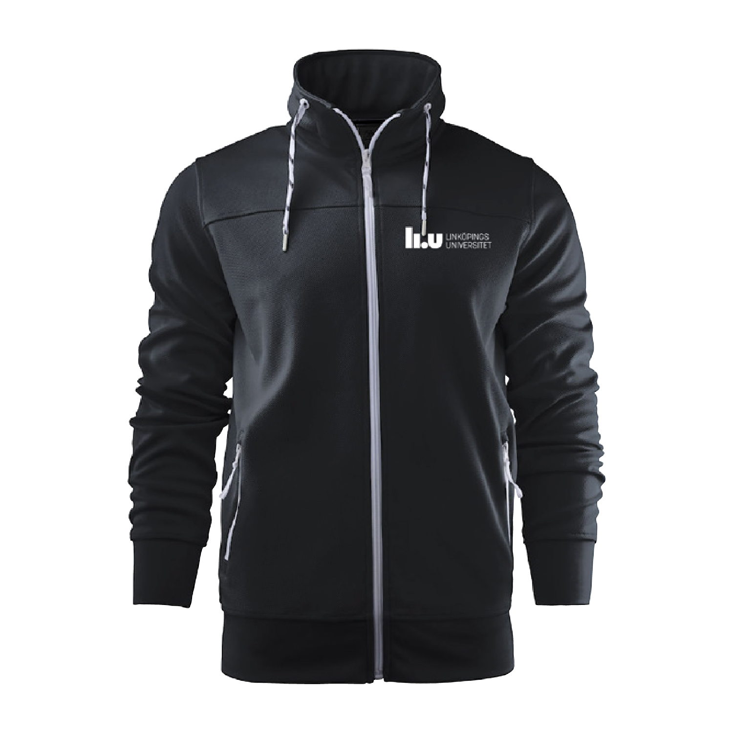 | Sportjacka i polyester med raglanärmar och en tvåfärgad dragsko. Blixtlås framtill och fickor med kontrasterande dragkedja. Dold dragkedja i kragen för att enkelt byta ut dragsko |
